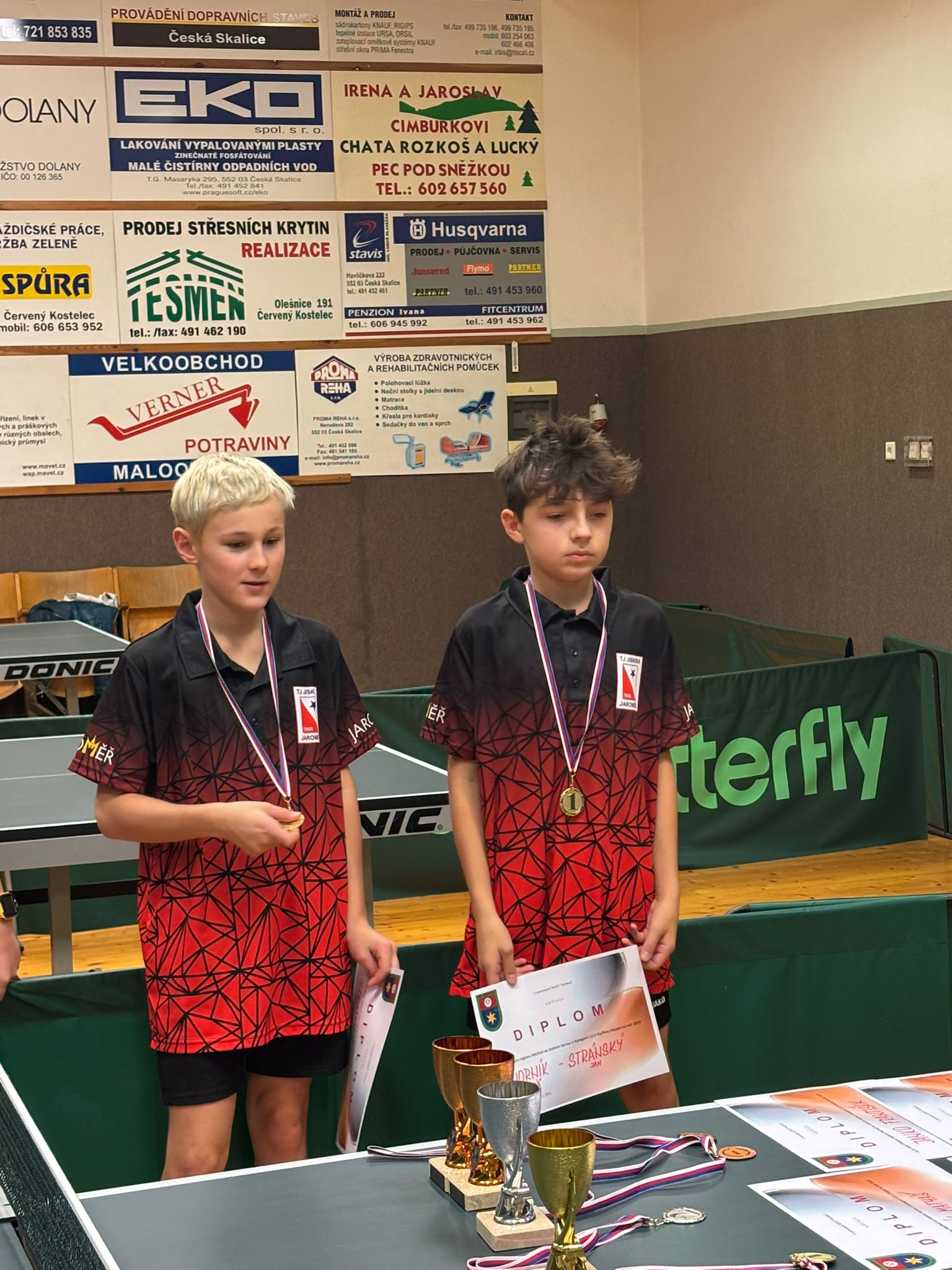 Okresní přebory kategorie U 13 v České Skalici, ovládli děcka z TJ Jiskra Jaroměř. Zvítězil Matyáš Horník a odvezl si domů titul okresního přeborníka na druhém místě se umístil Jan Stránský. A společně zvítězili kluci i ve čtyřhře. V dívkách skončila Lucka Frisová stříbrná a stejný úspěch zaznamenala ve čtyřhře.