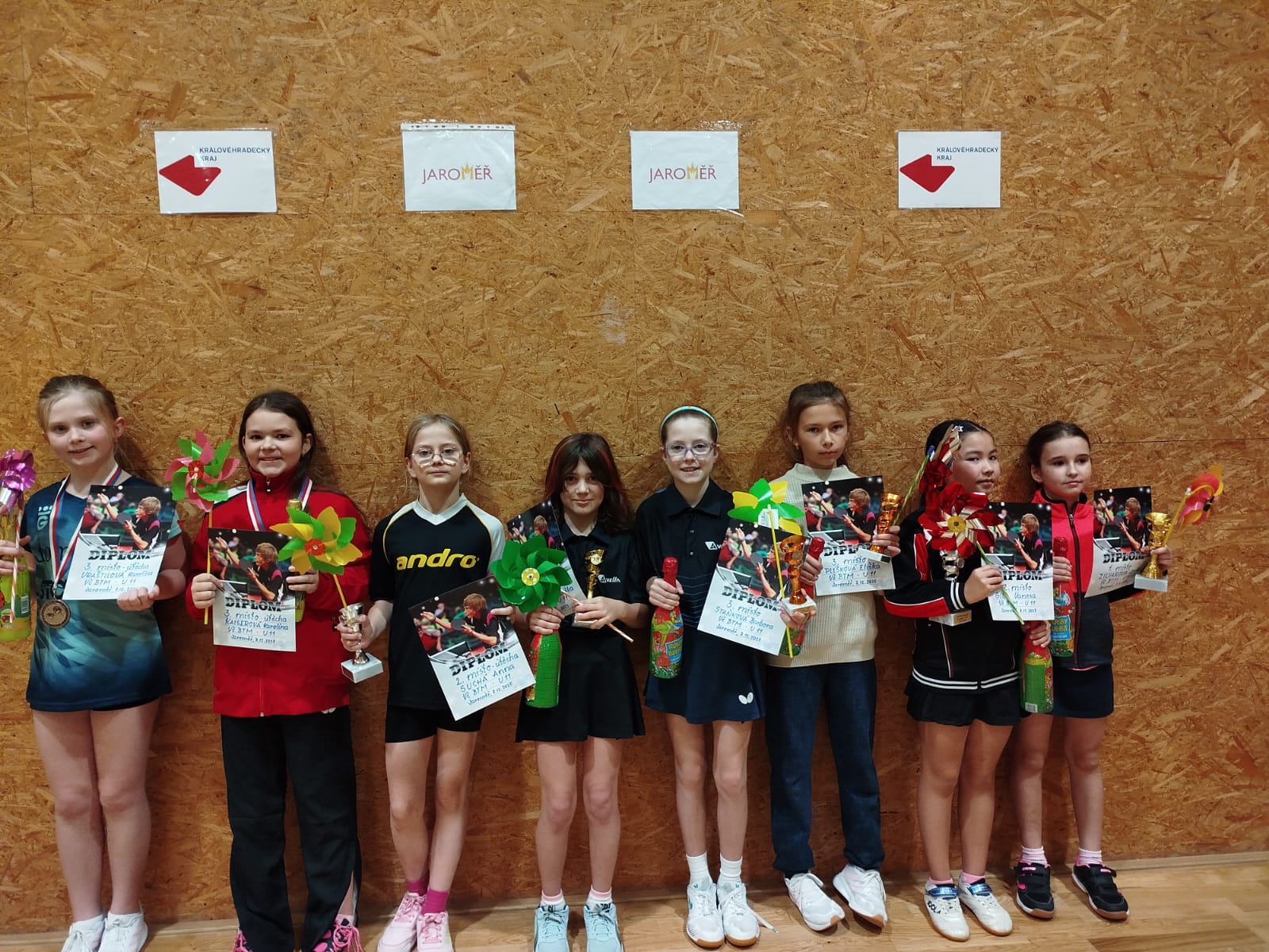 Hráčka TJ Jiskra Jaroměř Lucka Frisová v kategorii U 15 obsadila 1. místo v turnaji útěchy, TJ Jiskru Jaroměř na obou turnajích reprezentovalo 11 dětí.