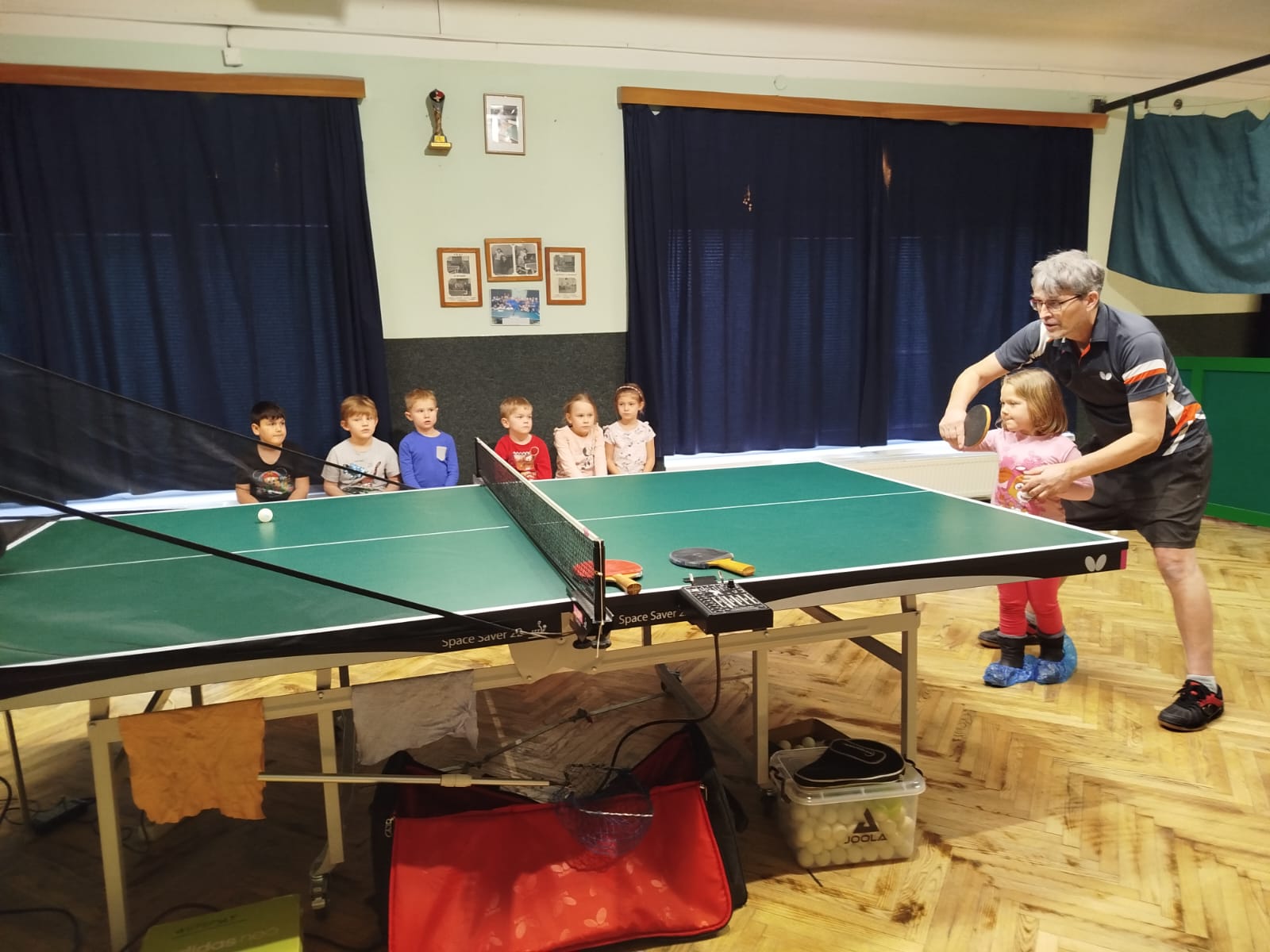 Mateřská školka se přišla podívat do naší herny stolního tenisu, kde si děti osvojovaly základy stolního tenisu, ale hlavně si přišly pohrát, zacvičit a pobavit se. Dětem se u nás moc líbilo. Dík patří našim mladým hráčkám L. Frisové a K. Paluskové, které se dětem věnovaly. Děti k nám přišly z Josefova pěšky a zpět si to zopakovaly, což je v dnešní době málo vídaný jev. Tuto akci si určitě zopakujeme. 😉